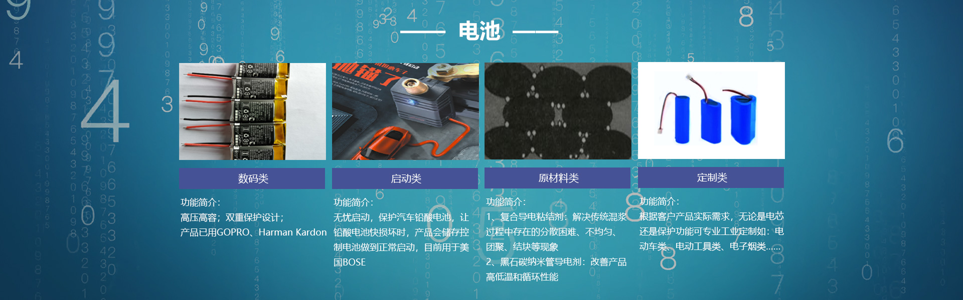 公司是一家集智能電子和新能源電池研發(fā)生產(chǎn)銷(xiāo)售的新型企業(yè),產(chǎn)品廣泛應(yīng)用于海、陸、空設(shè)備領(lǐng)域、民用和軍工市場(chǎng);為多家機(jī)構(gòu)研發(fā)生產(chǎn)專(zhuān)用特種充電器和鋰電池產(chǎn)品。